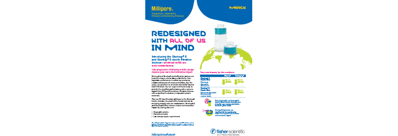Stericup™ E and Steritop™ E filter devices thread directly onto media bottles, reducing plastic waste, hazardous waste, and storage needs.
