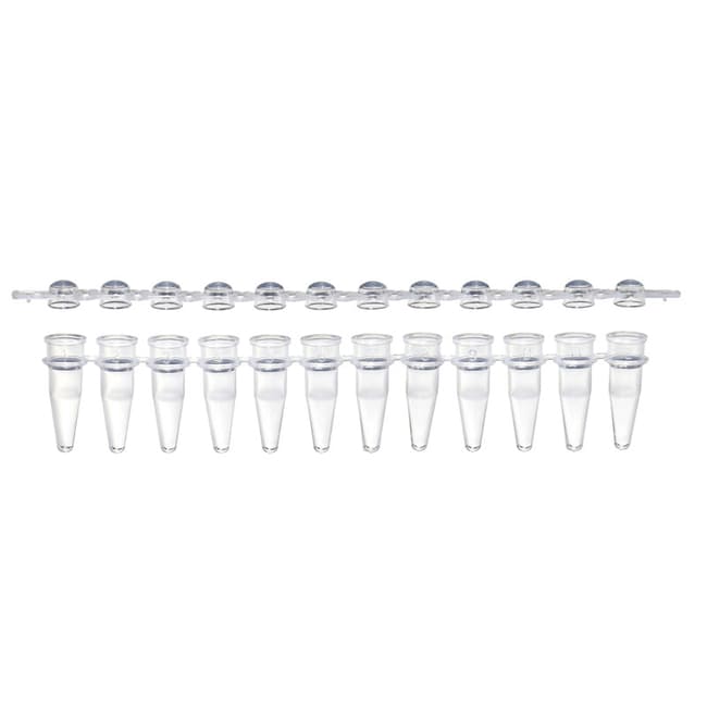 0.2 mL TempAssure PCR 12-tube strips with separate 12-cap (dome top) strips, natural. 80 strips each of tubes and caps per pack.