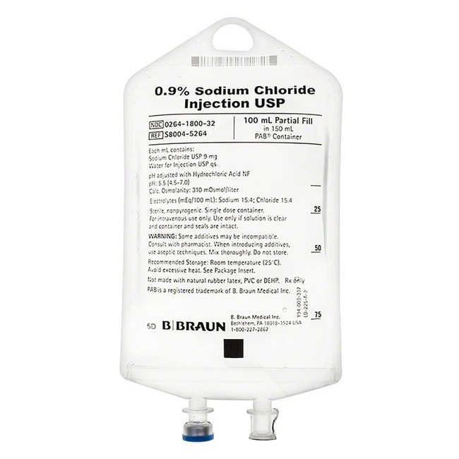Med Vet International Sodium Chloride Injection, 0.9%, 100mL Bag, 4 bags/pack
