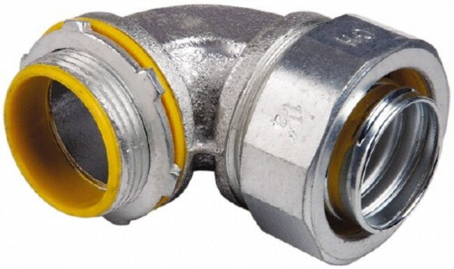 MSC Cooper Crouse-Hinds LTB12590 1-1/4" Trade Liquidtight Conduit Connector Malleable Iron, Insulated, Angled Connector, Threaded Connection