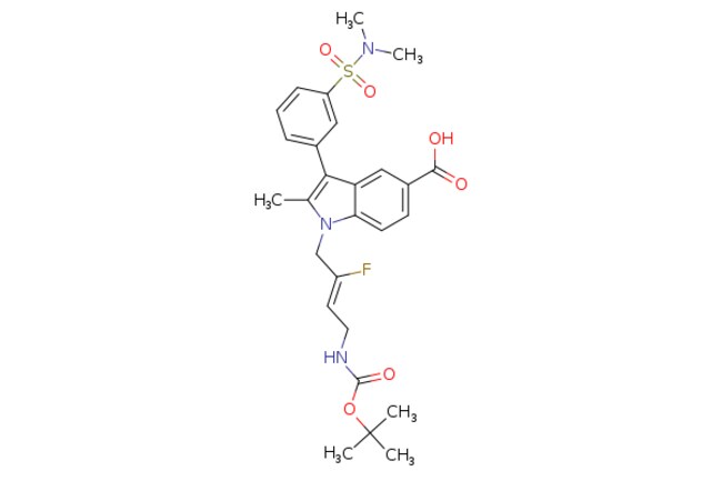 Synthonix / 1-[(2Z)-4-[(tert-butoxy)carbonyl]amino-2-fluorobut-2-en-1-yl]-3-[3-(dimethylsulfamoyl)phenyl]-2-methylindole-5-carboxylic acid / 50mg / 794076159 / AC80892 / / 2125957-07-3 / [null] / 545.630 / C27H32FN3O6S