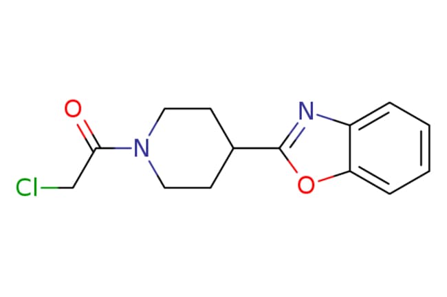 eMolecules Ambeed / 1-(4-(Benzo[d]oxazol-2-yl)piperidin-1-yl)-2-chloroethan-1-one / 1g / 572855066 / A1026862 / / 851288-56-7 / MFCD06378232 / 278.740 / C14H15ClN2O2
