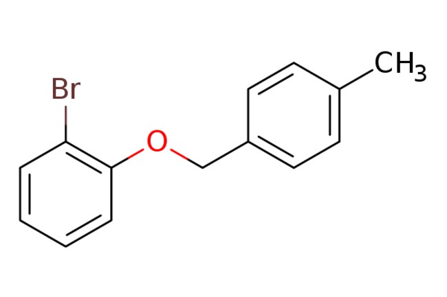 AOBChem USA / 1-bromo-2-((4-methylbenzyl)oxy)benzene / 250mg / 784409907 / 114220 / / 1036452-97-7 / MFCD07782693 / 277.161 / C14H13BrO