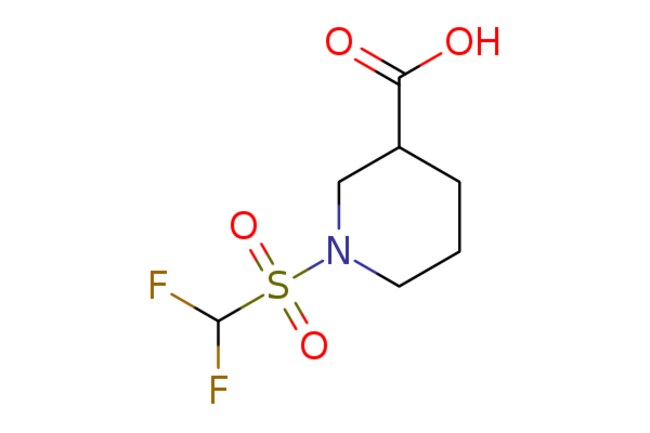 ChemScene / 1-Difluoromethanesulfonylpiperidine-3-carboxylic acid / 100mg / 680058614 / CS-0264589 / 0.000 / 1038291-18-7 / MFCD11156729 / 243.220 / C7H11F2NO4S