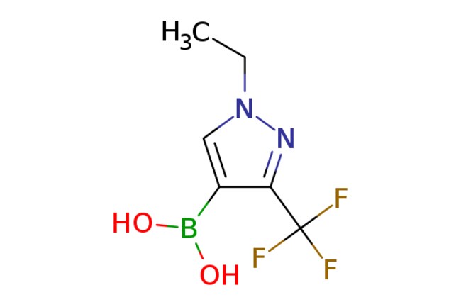 ChemScene / (1-Ethyl-3-(trifluoromethyl)-1H-pyrazol-4-yl)boronic acid / 100mg / 536805730 / CS-0101382 / 0.000 / 2287228-20-8 / MFCD25953897 / 207.950 / C6H8BF3N2O2