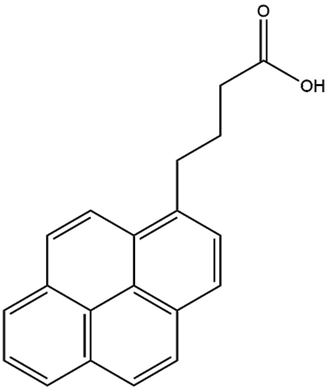 1-Pyrenebutyric acid (CAS 3443-45-6) is a fluorescent probe used in fluorescence-based DNA assays and biosensing applications This compound contains a polyaromatic pyrene moiety enabling stable noncovalent interactions with biomolecules and - stacking-mediated formation of organized monolayers on graphene and related substrates 1-Pyrenebutyric acid facilitates biomolecule immobilization and bioconjugation by serving as a linker in the functionalization of nanostructured materials It exhibits fluorescence sensitivity to molecular binding events supporting the detection of nucleic acids Based on these properties 1-Pyrenebutyric acid is utilized in fluorescence biosensing surface functionalization and the study of biomolecular interactions