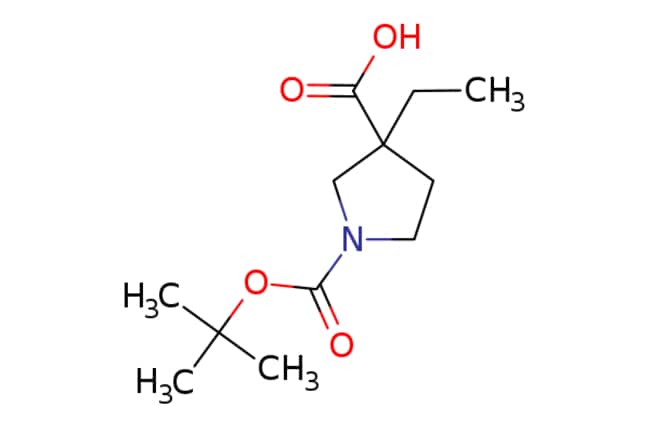 eMolecules Ambeed / 1-[(tert-Butoxy)carbonyl]-3-ethylpyrrolidine-3-carboxylic acid / 100mg / 528573199 / A978814 / / 1158751-03-1 / MFCD12406578 / 243.303 / C12H21NO4