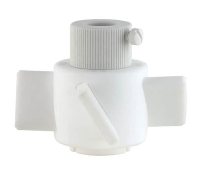 Agitator, PTFE, Four Blade, 10in Diameter, Fits 25.4mm Shaft Size, 60¿ Impeller Angle. Agitators are made entirely of PTFE and glass filled PTFE and are for use with 25.4mm OD stirrer shaft CG-2097 and have 60¿ impeller angles. The 60¿ impellers are set up to stir downwards in a clockwise direction and upwards when rotated counter-clockwise. Agitator hub is open so that it can be positioned anywhere along the shaft. Locks onto shaft with a collet hub and nut and has a glass filled PTFE safety screw. PLEASE NOTE: ANGLED IMPELLARS DESIGNED TO STIR UPWARDS IN A CLOCKWISE DIRECTION ARE AVAILABLE. PLEASE CALL FOR PRICING.