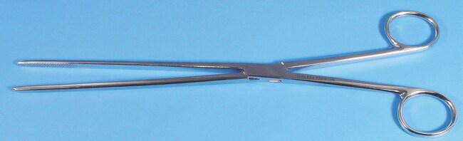 Stainless steel, long, serrated fine tips, for easy removal of specimens from deep containers. Scissor type.