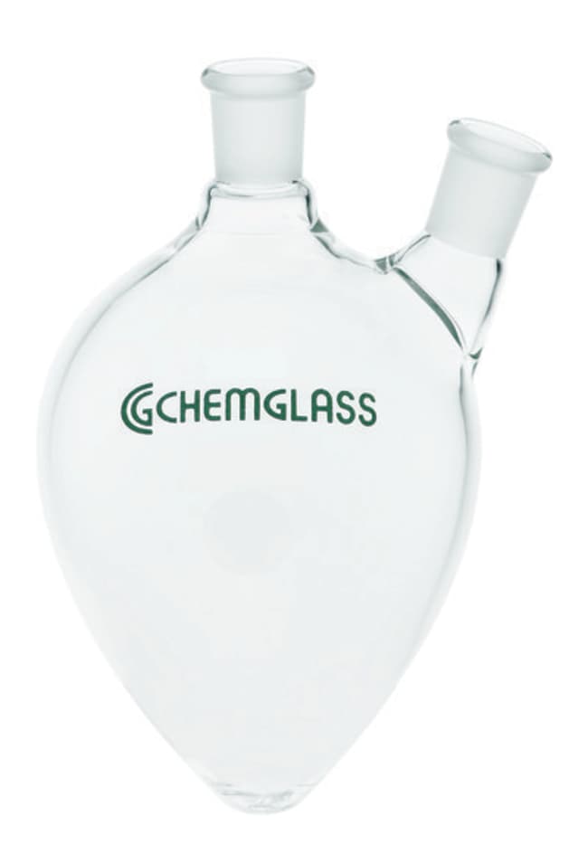 Chemglass Life Sciences 10mL 2-Neck Pear Shaped Flask, 1-CN 14/20 Outer, 1-SN 14/20 Outer Angled 20°
