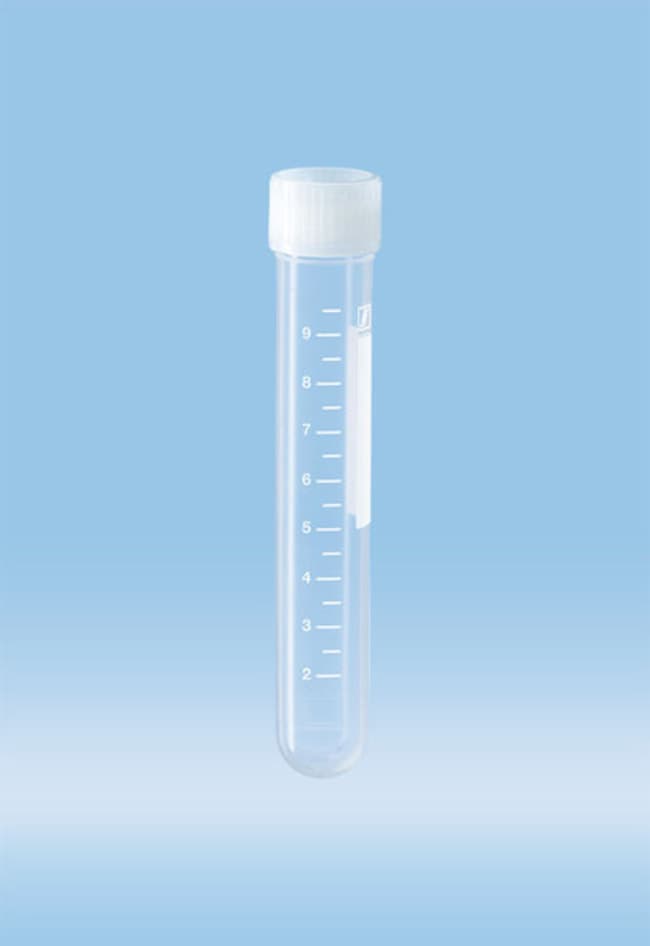 10ml Screen Printed Screw Cap Tube 15.3x92mm Round Bottom Polypropylene Graduations and Writing Block Cap Assembled Sterile