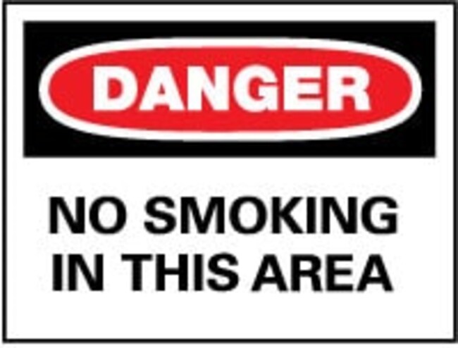 Accident Prevention Sign: Rectangle, "Danger, NO SMOKING IN THIS AREA"