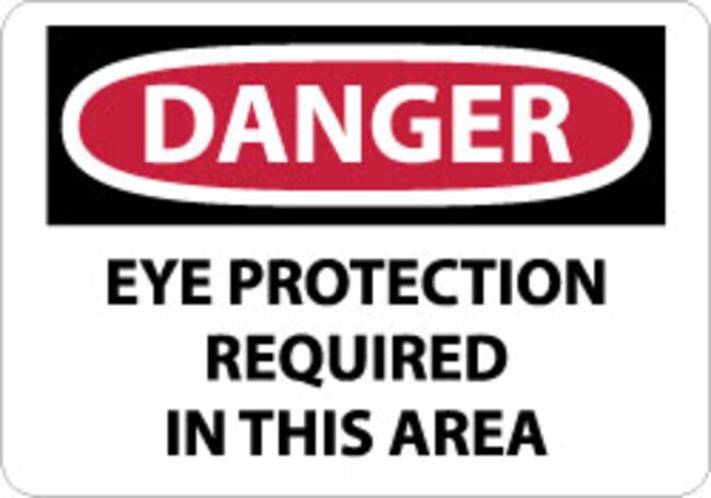 Accident Prevention Sign: Rectangle, "Danger, EYE PROTECTION REQUIRED IN THIS AREA"