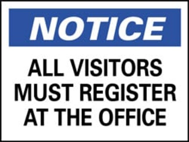 Security & Admittance Sign: Rectangle, "Notice, ALL VISITORS MUST REGISTER AT OFFICE"