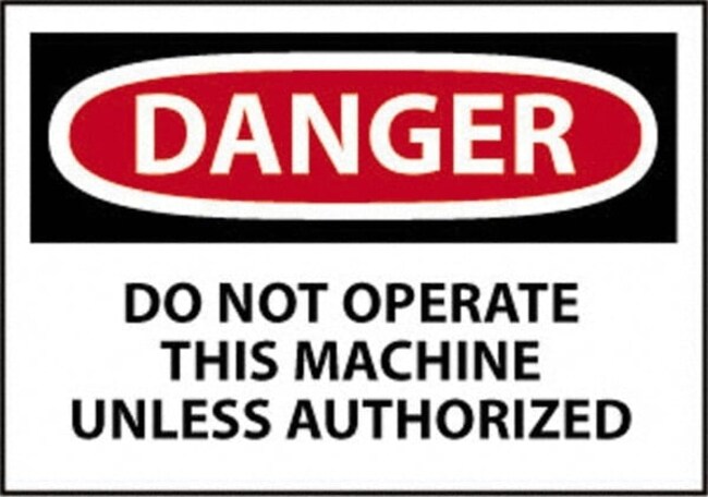 Sign: Rectangle, "Danger - Do Not Operate This Machine Unless Authorized"