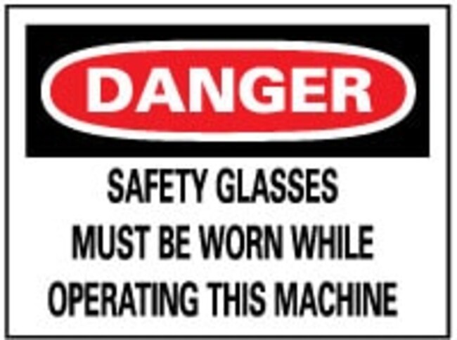 Sign: Rectangle, "Danger - Safety Glasses Must Be Worn While Operating This Machine"