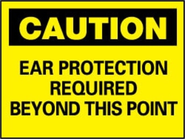 Sign: Rectangle, "Caution - Ear Protection Required Beyond This Point"