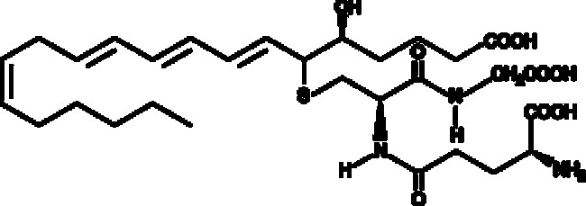 11-trans LTC4 is a C-11 double bond isomer of LTC4. LTC4 undergoes slow temperature-dependent isomerization to 11-trans LTC4 during storage. 11-trans LTC4 is produced in smaller amounts relative to LTC4 in ionophore-stimulated HMC-1 cells (a human mast cell line) and equine eosinophils{11135}, but not in human neutrophils or RBL-1 cells.{11184} It is nearly equipotent with LTC4 for contraction of guinea pig parenchymal and ileum.{2070,11187} In a radioligand binding assay using guinea pig ileum as a cysteinyl leukotriene receptor preparation, the pKis for LTC4 and 11-trans LTC4 were determined to be 6.42 and 6.58, respectively.{11187}