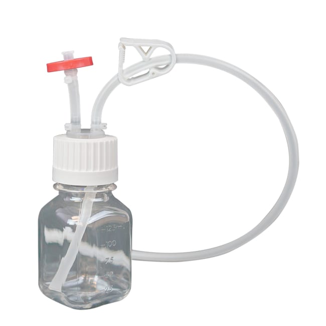 Foxx Life Sciences EZBio Single Use Media Bottle Assembly, 125mL Sterilized Polycarbonate (PC) Bottles for Aseptic Sampling and Sterile Storage, 38-430 VersaCap with Vent and Dip Tube, 10/CS