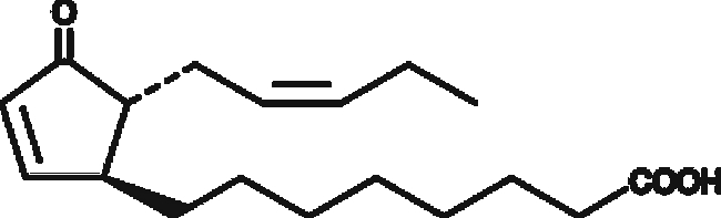 13-epi-12-oxo PDA is an LO metabolite of α-linolenic acid in the leaves of green plants such as corn. ω-3 and ω-6 PUFAs in plants are substrates for plant LOs.{857} 12-oxo PDA is one of the best studied end metabolites of this enzymatic pathway.{1562} While the initial enzymatic product and major isomer of 12-oxo PDA contains side chains in the cis position, both being β to the ring, the upper side chain attached at C-13, can and frequently does, isomerize when 12-oxo PDA is extracted, isolated, or stored. 13-epi-12-oxo PDA is the product of this isomerization.
