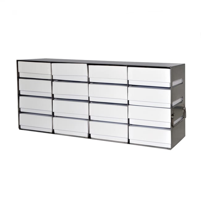 16-place (4 long x 4 high) upright freezer rack for 2 in H boxes, 21 5/16 in L x 5 1/2 in W x 8 7/8 in H, stainless steel