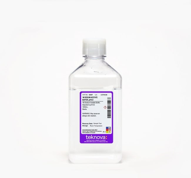 Teknova 1M Sodium Acetate, pH 6.0 Solution, 1000mL, Sterile 2 pack.