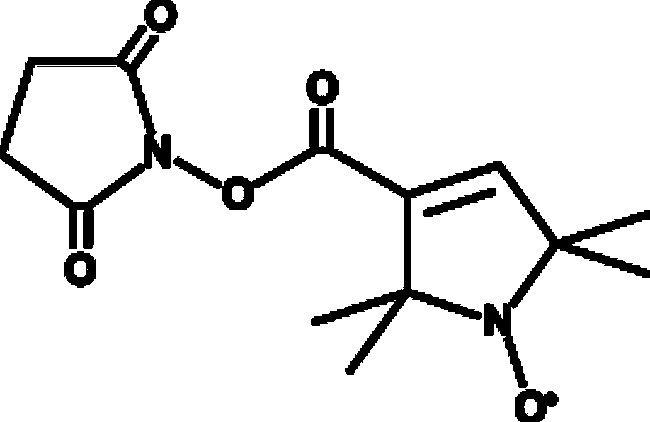 An N-hydroxysuccinimide ester of the nitroxide spin label tempyo; an active acylating agent that preferentially targets α-amino groups, used to spin label proteins and aminoacylated RNA species