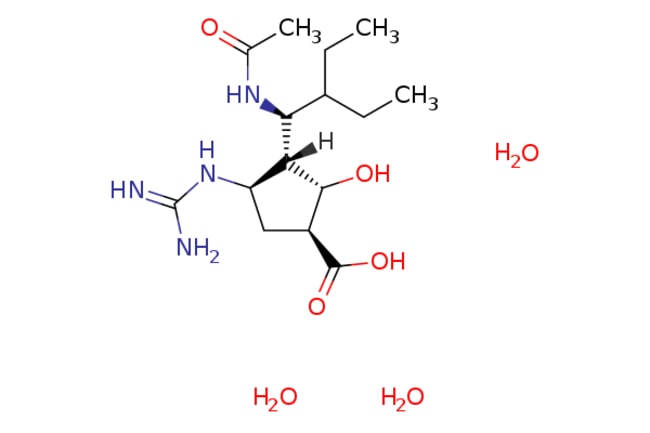 Ambeed / (1S2S3R4R)-3-((S)-1-Acetamido-2-ethylbutyl)-4-guanidino-2-hydroxycyclopentanecarboxylic acid trihydrate / 10mg / 534566443 / A130237 / / 1041434-82-5 / MFCD22417093 / 382.458 / C15H34N4O7