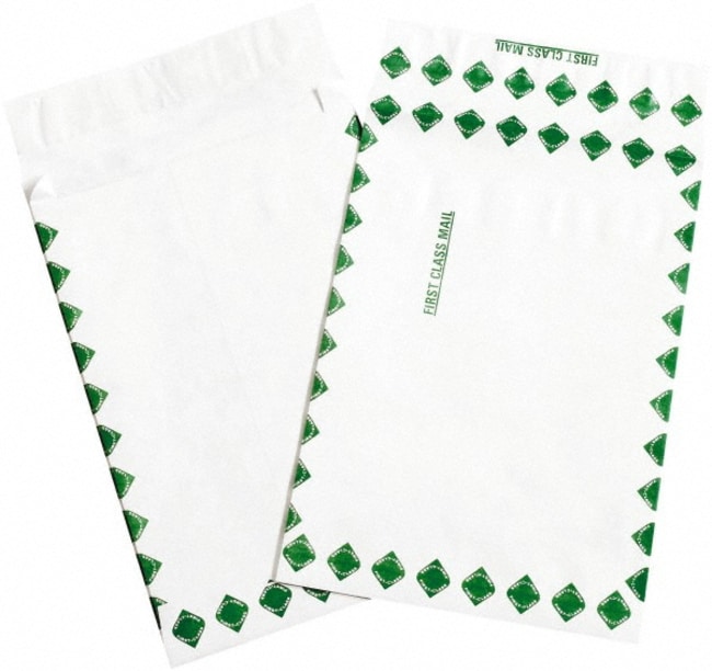 MSC Dupont TYE12162FC Pack of (100), 16" Long x 12" Wide Peel-Off Self-Seal Tyvek Expansion Envelopes White/Green
