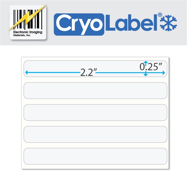2.20 inch x 0.25 inch white CryoLabel for Microplates. Resistant to moisture, smudging, and tearing, plus it holds up to alcohol and a wide variety of other chemicals. Designed for thermal transfer and durable UV inkjet printing, allowing you to color-code labels. Scratch and smear resistant when printed with T68 premium resin ribbon.