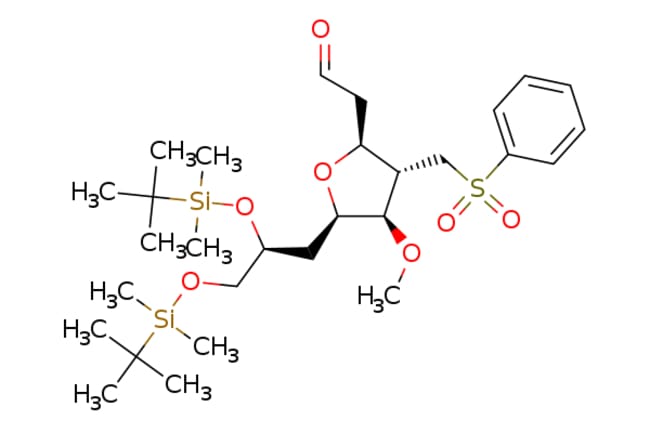 AstaTech / 2-((2S3S4R5R)-5-((S)-23-BIS((TERT-BUTYLDIMETHYLSILYL)OXY)PROPYL)-4-METHOXY-3-((PHENYLSULFONYL)METHYL)TETRAHYDROFURAN-2-YL)ACETALDEHYDE / 0.1g / 721300756 / D75883 / 98.000 / 871348-24-2 / [null] / 600.960 / C29H52O7SSi2