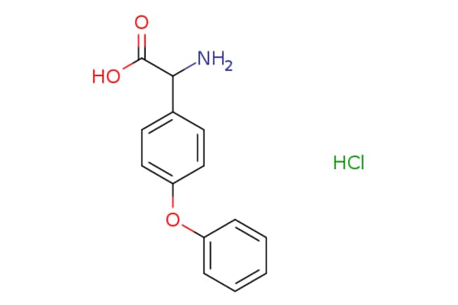Oakwood Chemical | 2-Amino-2-(4-phenoxyphenyl)acetic acid hydrochloride | 250mg | 537710462 | 103848 | | 858843-01-3 | MFCD07371463 | 279.720 | C14H14ClNO3
