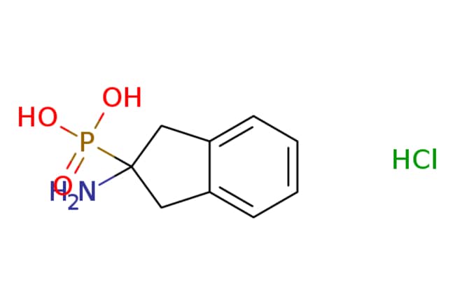 Ambeed / (2-Amino-23-dihydro-1H-inden-2-yl)phosphonic acid hydrochloride / 100mg / 525001663 / A110664 / / 1416354-35-2 / MFCD23135861 / 249.630 / C9H13ClNO3P