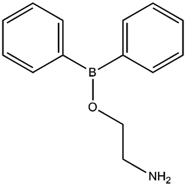 Apexbio Technology LLC 2-APB(Synonyms: 2-Aminoethoxydiphenyl borate, 2-Aminoethyl diphenylborinate, 2-Aminoethoxydiphenylborane), 10mM (in 1mL DMSO), CAS: 524-95-8.