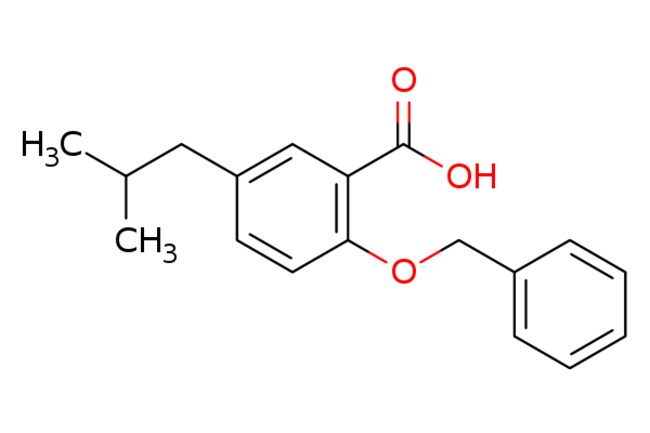 eMolecules AOBChem USA / 2-(Benzyloxy)-5-isobutylbenzoic acid / 250mg / 768964428 / 63507 / / 186419-23-8 / [null] / 284.355 / C18H20O3