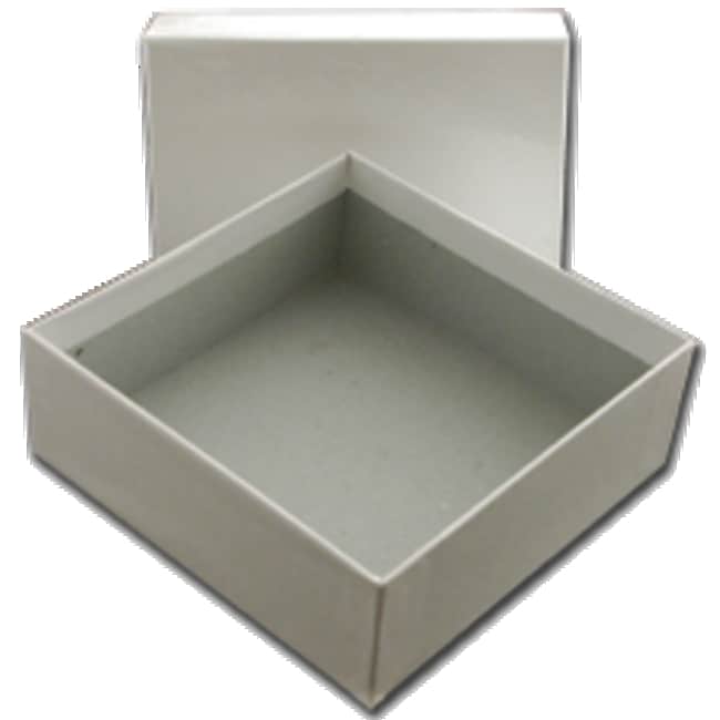 Cryo-freezer boxes are protected from liquid nitrogen or condensation from freezers by a moisture repellent coating. Our freezer boxes are made of a sturdy white cardbard and fit all standard-stainless steel and polycarbonate storage systems. For use in mechanical freezers and liquid nitrogen tanks at temperature to -196°C. White water repellent cardboard box for storage of samples or tubes. With Low Profile Lid With Cell Dividers, with NO drain holes Dimensions (L x W x H) 5 5/16 x 5 5/16 x 1 15/16”