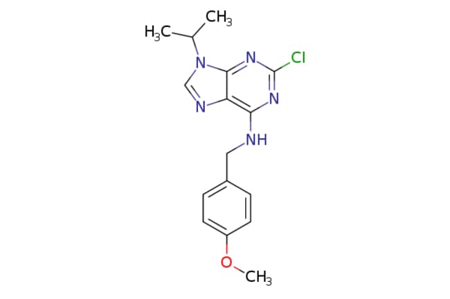 ChemScene / 2-Chloro-9-isopropyl-N-(4-methoxybenzyl)-9H-purin-6-amine / 100mg / 572225471 / CS-M2520 / 0.000 / 203436-13-9 / MFCD28167882 / 331.800 / C16H18ClN5O