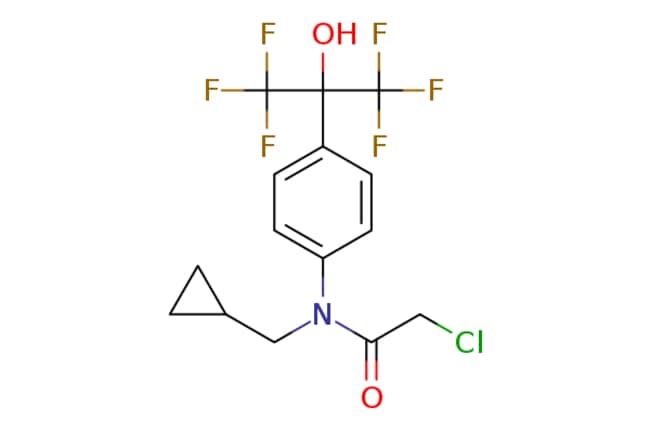 AstaTech | 2-CHLORO-N-(CYCLOPROPYLMETHYL)-N-(4-(1,1,1,3,3,3-HEXAFLUORO-2-HYDROXYPROPAN-2-YL)PHENYL)ACETAMIDE | 1g | 410711504 | 20869 | 95.000 | 1951441-02-3 | MFCD09909356 | 389.720 | C15H14ClF6NO2