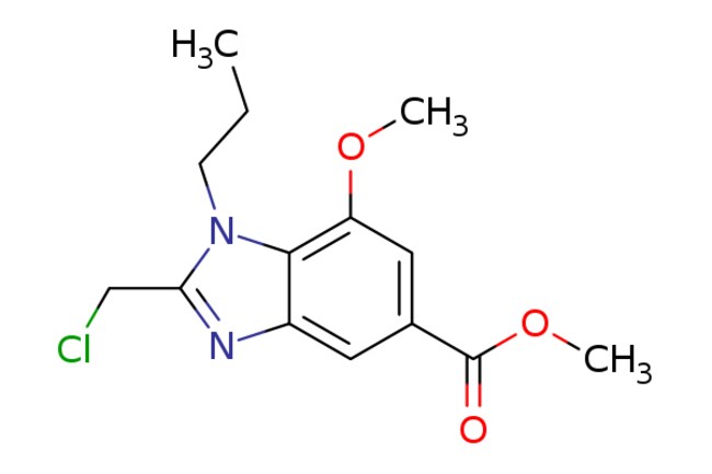 eMolecules JW PharmLab LLC / 2-Chloromethyl-7-methoxy-1-propyl-1H-benzoimidazole-5-carboxylic acid methyl ester / 25mg / 713381637 / 30R0059 / 96.000 / 2803465-18-9 / [null] / 296.750 / C14H17ClN2O3