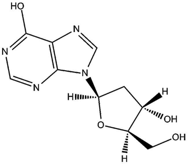 2-Deoxyinosine (CAS 890-38-0) is a purine nucleoside composed of the base hypoxanthine linked to a deoxyribose sugar Structurally analogous to natural DNA nucleosides 2-deoxyinosine can be incorporated into DNA during replication or repair where it may induce mispairing and promote mutagenesis This property makes it a valuable tool in studies of DNA damage mutational mechanisms and nucleotide metabolism Additionally 2-deoxyinosine is used in enzymatic assays to investigate nucleoside metabolism and the activity of purine nucleoside phosphorylase or related enzymes in biochemical and cellular contexts