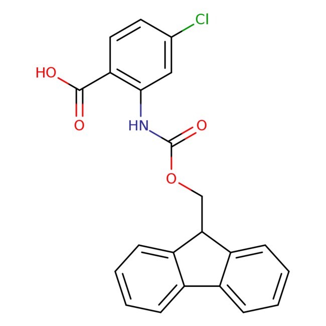 - IUPAC: 2-((((9H-fluoren-9-yl)methoxy)carbonyl)amino)-4-chlorobenzoic acid
