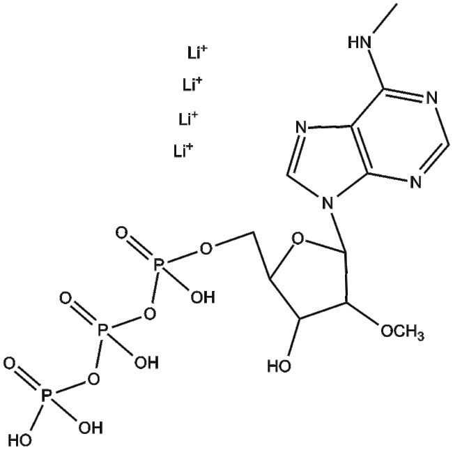 2p-O-Methyl-N6-Methyl-ATP is a chemically modified ATP analog bearing methyl substitutions at the N6 position of adenine and the 2 -hydroxyl group of the ribose sugar 2p-O-Methyl-N6-Methyl-ATP is designed to facilitate the study of RNA methylation processes and RNA protein interactions supporting the mechanistic exploration of RNA-modifying enzymes and epigenetic regulatory pathways Based on these properties 2p-O-Methyl-N6-Methyl-ATP holds research potential in investigations of ligand RNA interactions and drug discovery applications targeting RNA-related biological processes