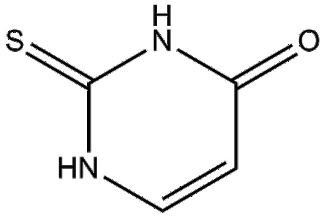 2-Thiouracil (CAS 141-90-2) is a sulfur-containing derivative of uracil that functions as an inhibitor of thyroid hormone synthesis It exerts its antihyperthyroid effects by interfering with the enzymatic iodination of tyrosine residues within thyroglobulin thereby suppressing the production of triiodothyronine (T3) and thyroxine (T4) Due to its capacity to modulate thyroid function 2-Thiouracil is utilized in biomedical research to study thyroid hormone regulation and associated disorders as well as to model hypothyroid states in experimental settings
