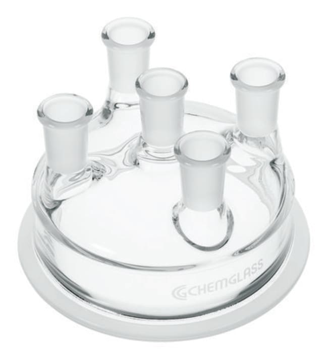 Chemglass Life Sciences Reaction Vessel Lid, 5-Neck, 45/50 Center Neck, 4-24/40 Side Necks, 200mm Schott Flange