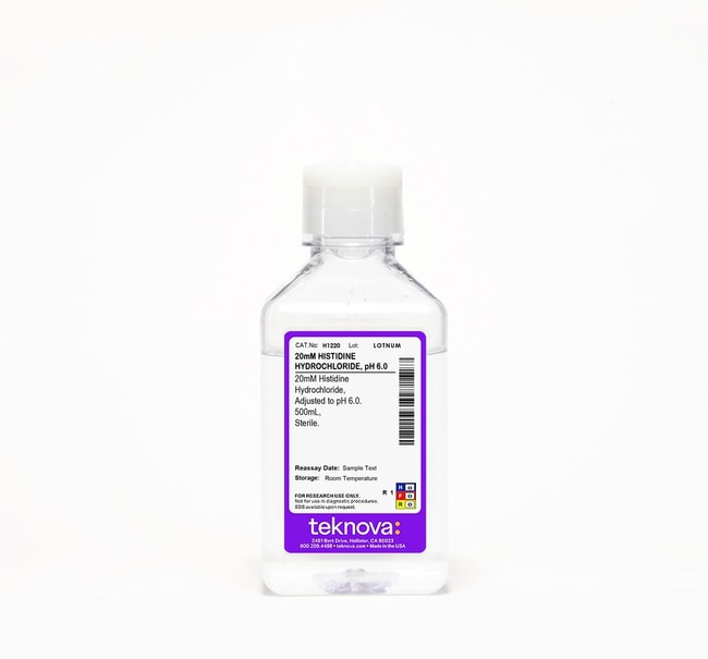 Teknova 20mM Histidine Hydrochloride pH 6.0, 500mL, Sterile. 8 pack.