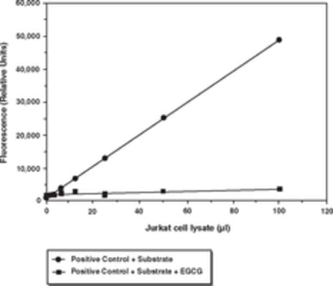 The 20S proteasome is the proteolytic core of a large protein degradation complex, the 26S proteasome. Proteasome inhibitors exhibit anti-inflammatory and antiproliferative effects, evidence that the proteasome may be an important drug target for the treatment for cancer and inflammatory diseases. Cayman’s 20S Proteasome Assay employs a specific 20S substrate, SUC-LLVY-AMC which, upon cleavage by the active enzyme, generates a highly fluorescent product with an emission wavelength at 480 nm.