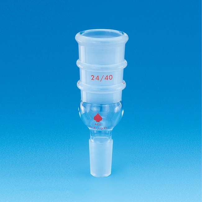 Ace Glass, Inc. Connecting adapter with 24/40 top female and 19/22 bottom male standard taper joints.