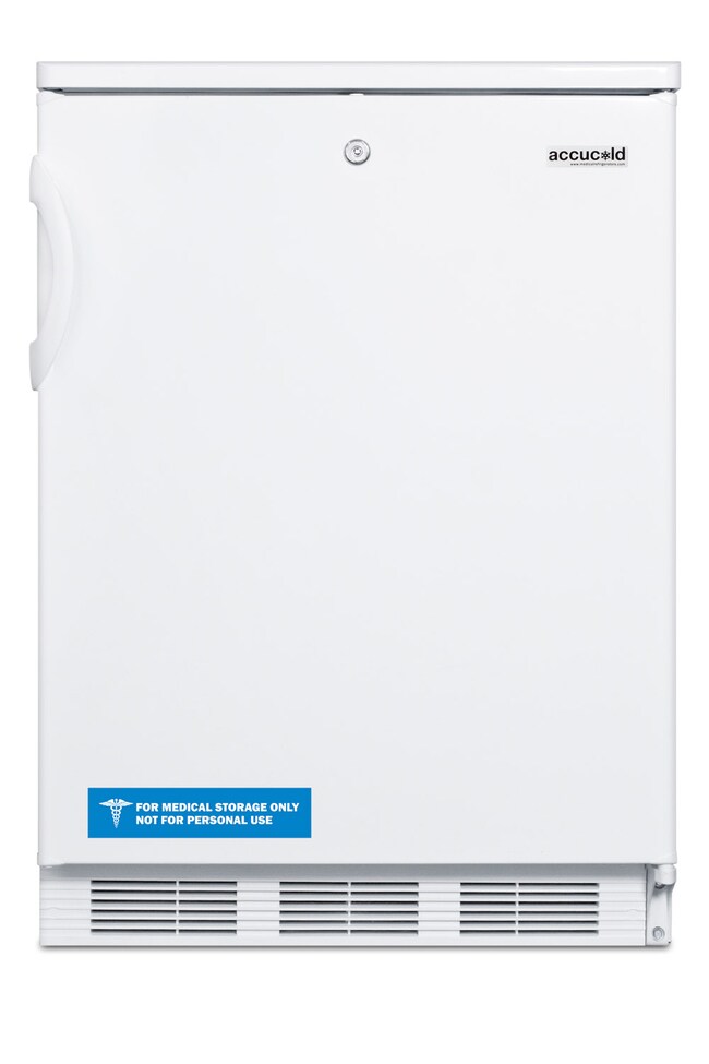 The FF7LW is a counter height all-refrigerator with a full 5.5 cu.ft. capacity inside a slim 24" footprint. Designed for freestanding use, this model has a white exterior and user-reversible door swing. A factory installed front lock offers convenient security: https://www.accucold.com/product/FF7LW
