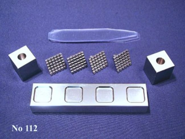 PATHOLOGY INNOVATIONS The Peters Precision Cryoembedding System Medium Well Bar Set comes with one 24 mm well bar, 4 small chucks, 2 over-chuck freezing blocks and 8 dispensing slides.
