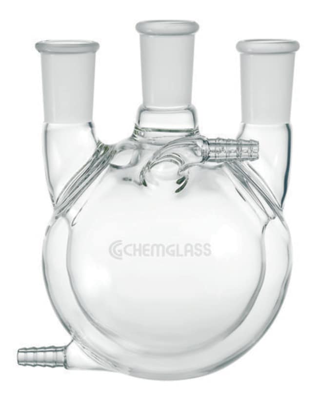Chemglass Life Sciences Flask, Round Bottom, 2000mL, Heavy Wall, 3-Neck, 29/42 CN - 24/40 SNs, Vertical, Jacketed